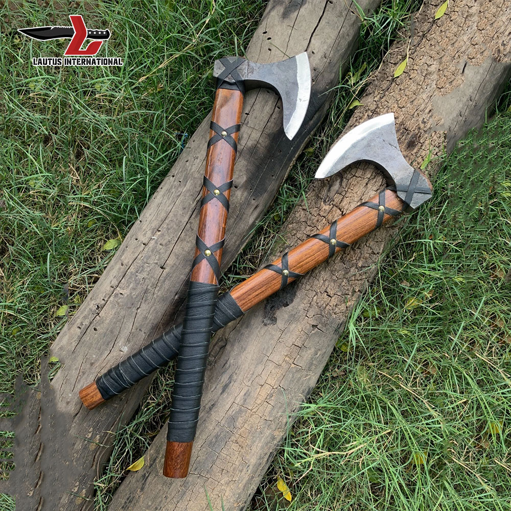 Forged Tomahawks and Axes with Sheaths are built for strength, precision, and versatility—perfect for outdoor adventures, survival, and tactical use. Hand-forged from high-carbon steel or Damascus steel, these axes offer incredible durability, sharp cutting edges, and a rugged, authentic look. Paired with custom-fit leather sheaths for safe carrying and storage, each piece can be fully customized with handle materials, blade finishes, and personalized engravings.