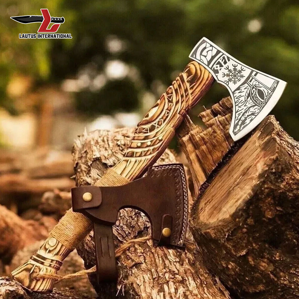 Forged Tomahawks and Axes with Sheaths are built for strength, precision, and versatility—perfect for outdoor adventures, survival, and tactical use. Hand-forged from high-carbon steel or Damascus steel, these axes offer incredible durability, sharp cutting edges, and a rugged, authentic look. Paired with custom-fit leather sheaths for safe carrying and storage, each piece can be fully customized with handle materials, blade finishes, and personalized engravings.